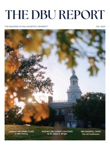 FALL 2025 1 THE DBU REPORT THE MAGAZINE OF DALLAS BAPTIST UNIVERSITY FALL 2025 LARGEST INCOMING CLASS in DBU History KEEPING DBU CHRIST-CENTERED by Dr. Adam C. Wright DBU BASEBALL JOINS Pac-12 Conference